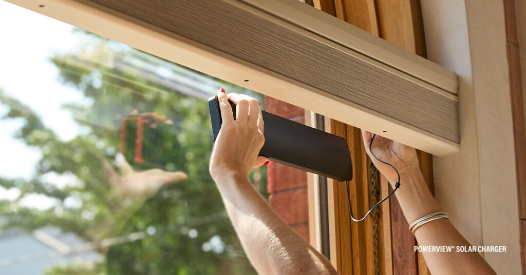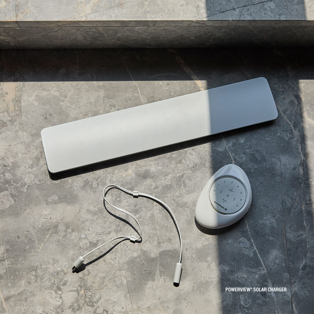 I am loving the Hunter Douglas lithium-ion rechargeable battery wands and solar charging kits for hard-to-reach shades and low-maintenance setups.
