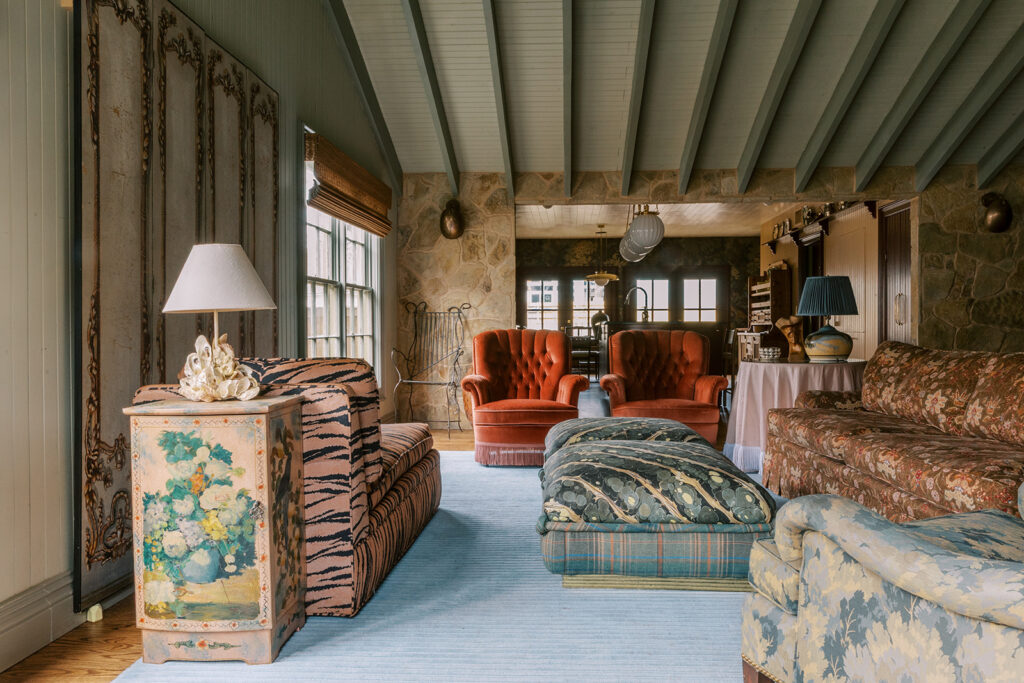 Claire plays with pattern, embracing “wild stripes” that create dynamic movement against more saturated, sculptural furnishings. These bold, striped woven shades aren’t just window coverings. They’re design elements in their own right.